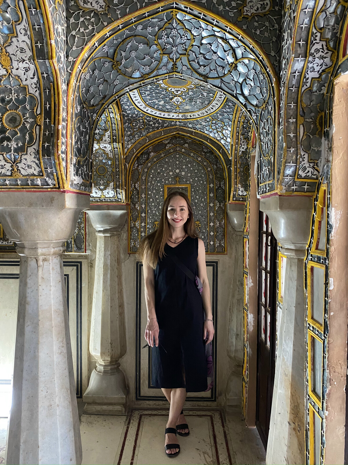 Несмотря на изобилие туристов, этот город прекрасен. Архитектурой и искусством, которыми дышит абсолютно все — от дворцов до стен обычных домов, которые украшены раджастанскими росписями. Целыми днями мы бродили по украшенным королевским покоям, рассматривали узоры на камне и пашминах, и много фотографировались — найти хороший кадр здесь несложно. В Джайпуре находится храм Говинд Девджи, в котором хранится известная мурти Кришны из Вриндавана, спасенная от нападений моголов, а также несколько других важных вайшнавских храмов. В горах располагается храм обезьян Галтаджи, где находится самопроявленная мурти Ханумана, защитника верующих — если не боитесь, их можно покормить.