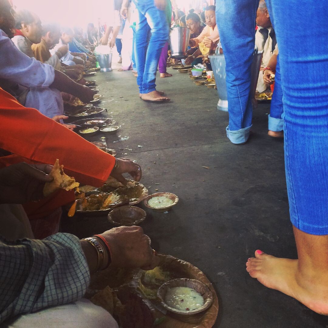 Ашрамовская еда — в тарелках из пальмовых листьев, невероятно вкусная, и даже чили мало. Не знала, что нужно приходить со своей ложкой, возможно, теперь полюблю есть руками, как рекомендуется в исламе и индуизме.
